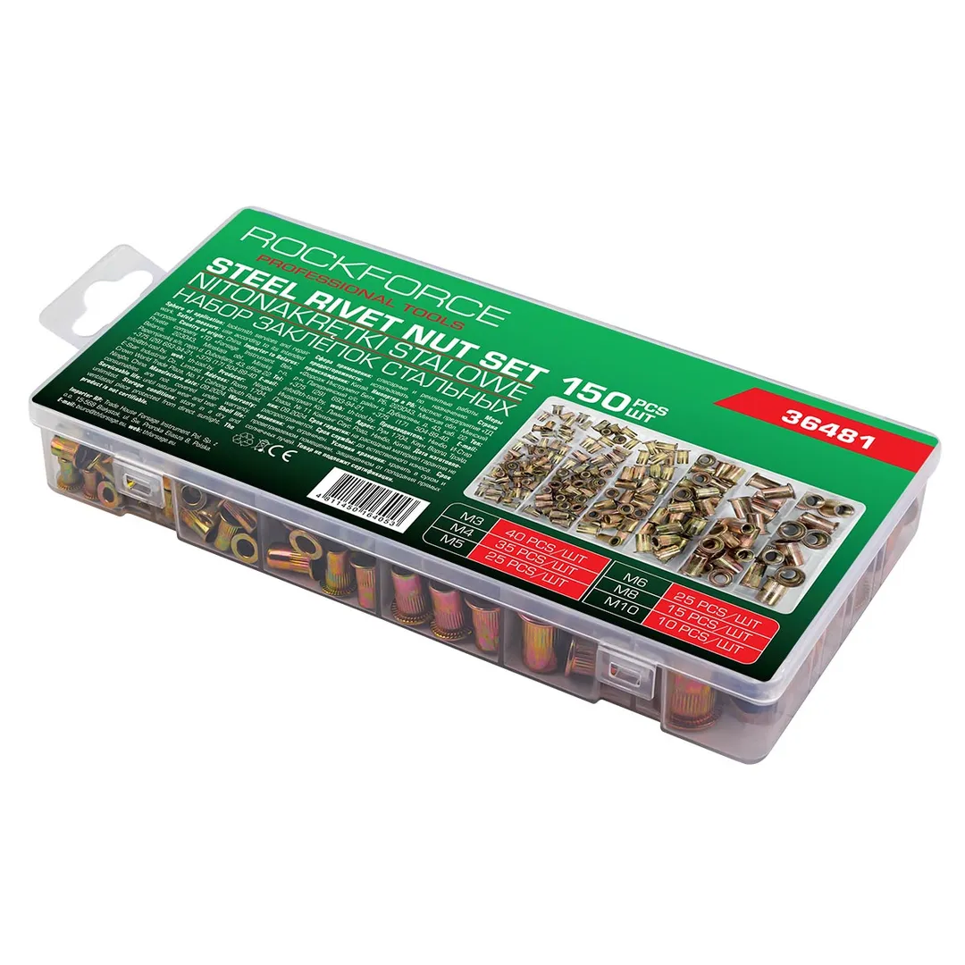 Набор резьбовых стальных заклепок М3-М10 150 шт RockForce RF-36481