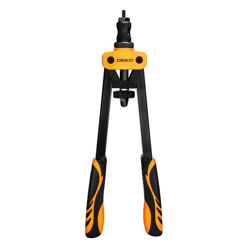 - Двуручный заклепочник DEKO HR03-1 предназначен для установки резьбовых заклепок (медних, алюминиевых, стальных) диаметром M3–M10 при выполнении монтажных и ремонтных работ по металлу, пластику и композитным материалам. Инструмент востребован при сборке металлоконструкций, оборудования, профильных рам, элементов кузова автомобилей и другой техники, где требуется создание прочного резьбового соединения в тонкостенных деталях.