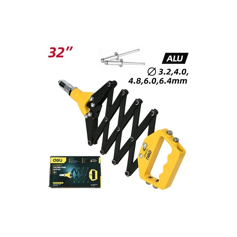 Заклепочник рычажно-складной Deli YS EDL236932, 812 мм, 3.2-6.4 мм, желтый, черный