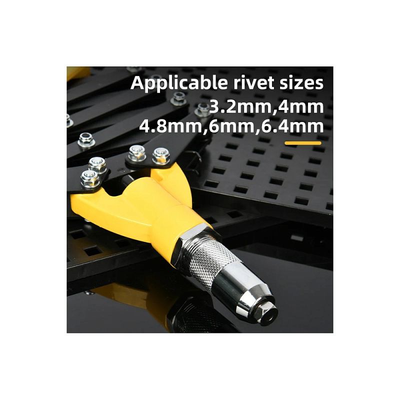Заклепочник имеет яркий желтый цвет, который делает его заметным на рабочем месте и облегчает поиск инструмента в случае необходимости.