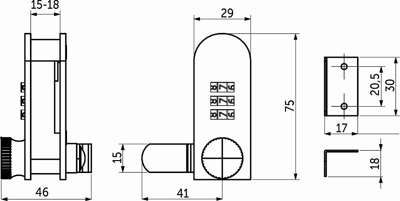 Замок для распашной двери кодовый 602 с ключом AKS 90684, описание: