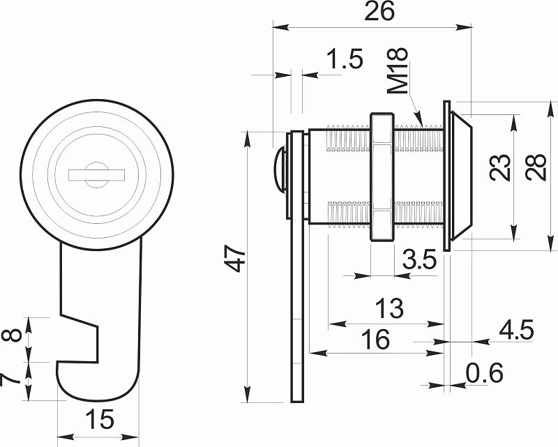 Замок (удерживающий механизм) мебельный, врезной. Обычно используется для почтовых ящиков, металлических шкафов, тумб, сумочниц, выдвижных ящиков или других подобных конструкций.Технические характеристики: