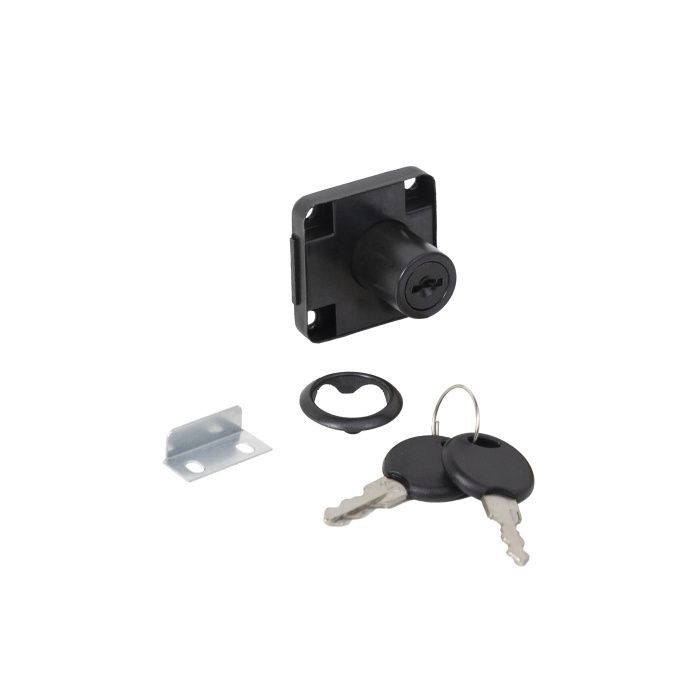 Данная модель является наиболее популярной среди мебельных замков. Замок предназначен для деревянных, ЛДСП, МДФ - фасадов толщиной 16-18 мм. Для монтажа данного типа замков необходимо высверлить отверстие для личинки цилиндра, сам же корпус замка крепится саморезами с обратной стороны фасада. С лицевой стороны фасада к замку монтируется декоративная накладка.Технические характеристики: