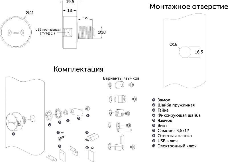 Замок мебельный, электронный, IC-карта, 103, D41mm, PRIME by AKS 126171, технические характеристики: