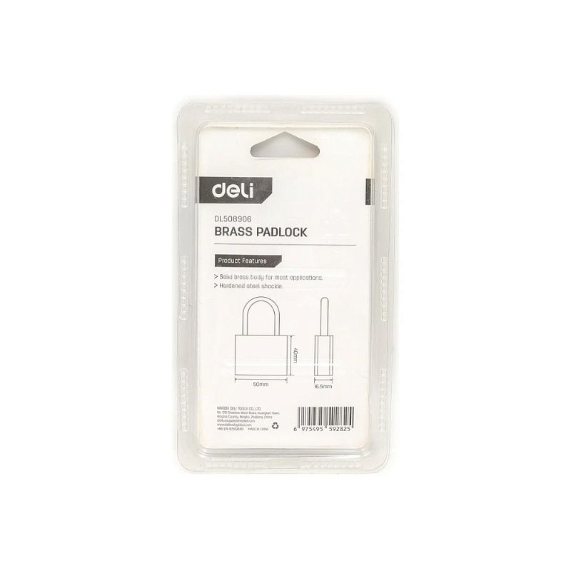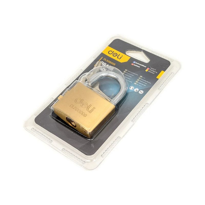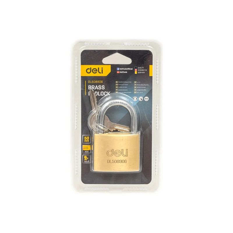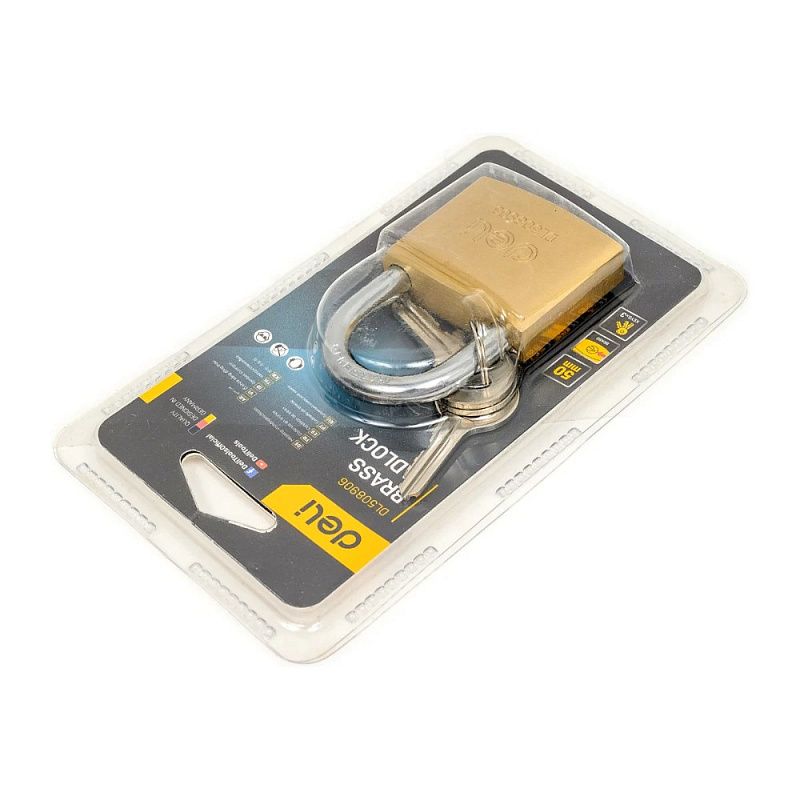 Замок навесной Deli YS EDL508906, 50 мм, 3 ключа, автомат, латунь