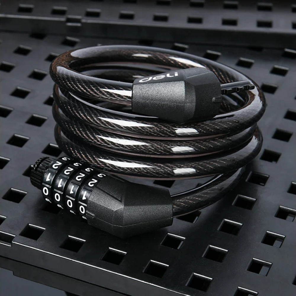 Тросовый кодовый замок Deli DL508051 для велосипедов – надежная защита от угона.