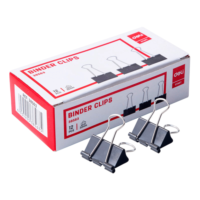 Зажим для бумаг "Deli", 32 мм, 12 штук, черный