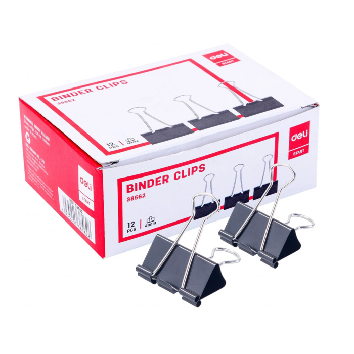 Зажим для бумаг "Deli", 41 мм, 12 штук, черный