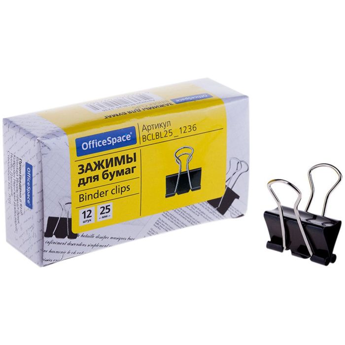 Зажим для бумаг "OfficeSpace", 25 мм, 12 шт, черный