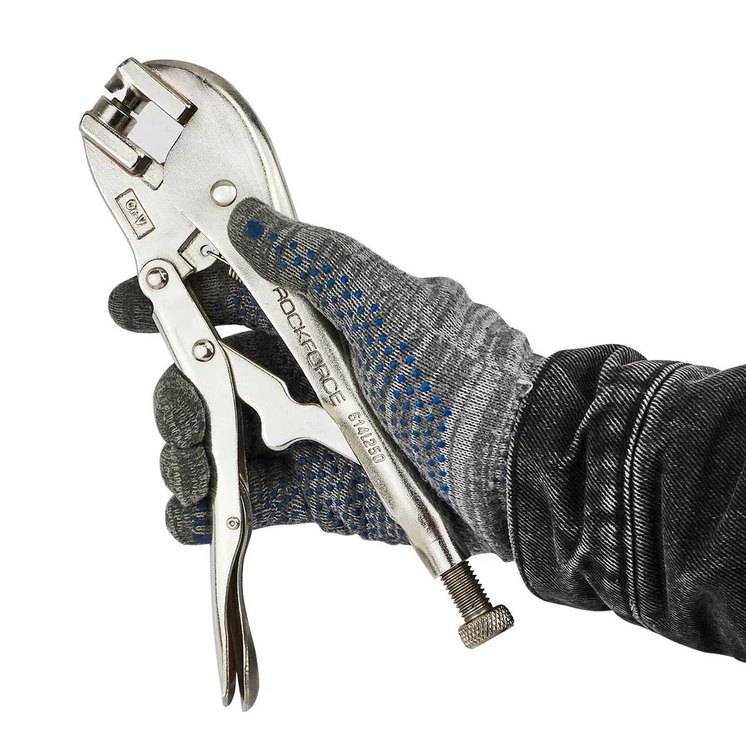 Гейферный зажим с двойным овальным захватом 10" -250мм – это надежный инструмент, который обеспечивает превосходную фиксацию и удержание деталей различных форм и размеров. Он имеет специальные овальные захваты, которые обеспечивают более широкий диапазон захвата, что позволяет использовать зажим для работы с различными материалами и формами. ажим с губками с насечками и винтом, который расположен на рукоятке и обеспечивает надежную фиксацию и позволяет плавно изменять величину рабочего хода губок. Пружина внутри обеспечивает высокое усилие сжатия. При необходимости его можно отрегулировать при помощи специального винта. Материал инструмента инструментальная сталь. Используемые материалы обеспечивают долгий срок службы зажима. Он устойчив к коррозии и износу, что позволяет использовать зажим гейферный в течение длительного времени без потери качества работы. Инструмент идеально подходит для сварочных работ, ремонта автомобилей, а также для проведения слесарных работ во время технического обслуживания.Преимущества работы с нами