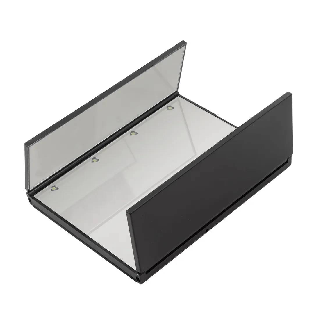 Зеркало для макияжа с LED подсветкой - красивый и практичный аксессуар. Зеркало настольное отличается качественным и чистым отражением, а устойчивая ножка-основание позволит надежно установить косметический аксессуар, избегая опрокидывания и делая процедуры ухода за собой максимально комфортными. Наличие светодиодной подсветки устраняет тени и делает отражение ярким, что дает возможность пользоваться косметическим зеркалом даже при минимальном освещении. Включение/выключение и управление яркостью происходит нажатием на кнопку, находящуюся на верхней части пластикового корпуса. Минималистичное интерьерное зеркало на подставке выполнено из безопасного ABS-пластика. Зеркало косметическое складное, выполненное в стиле минимализм, идеально подойдет для любого интерьера в ванную комнату, спальню или прихожую. Размер зеркала: 155х122х13 мм. Подсветка работает от 2 батареек CR2032.Преимущества работы с нами